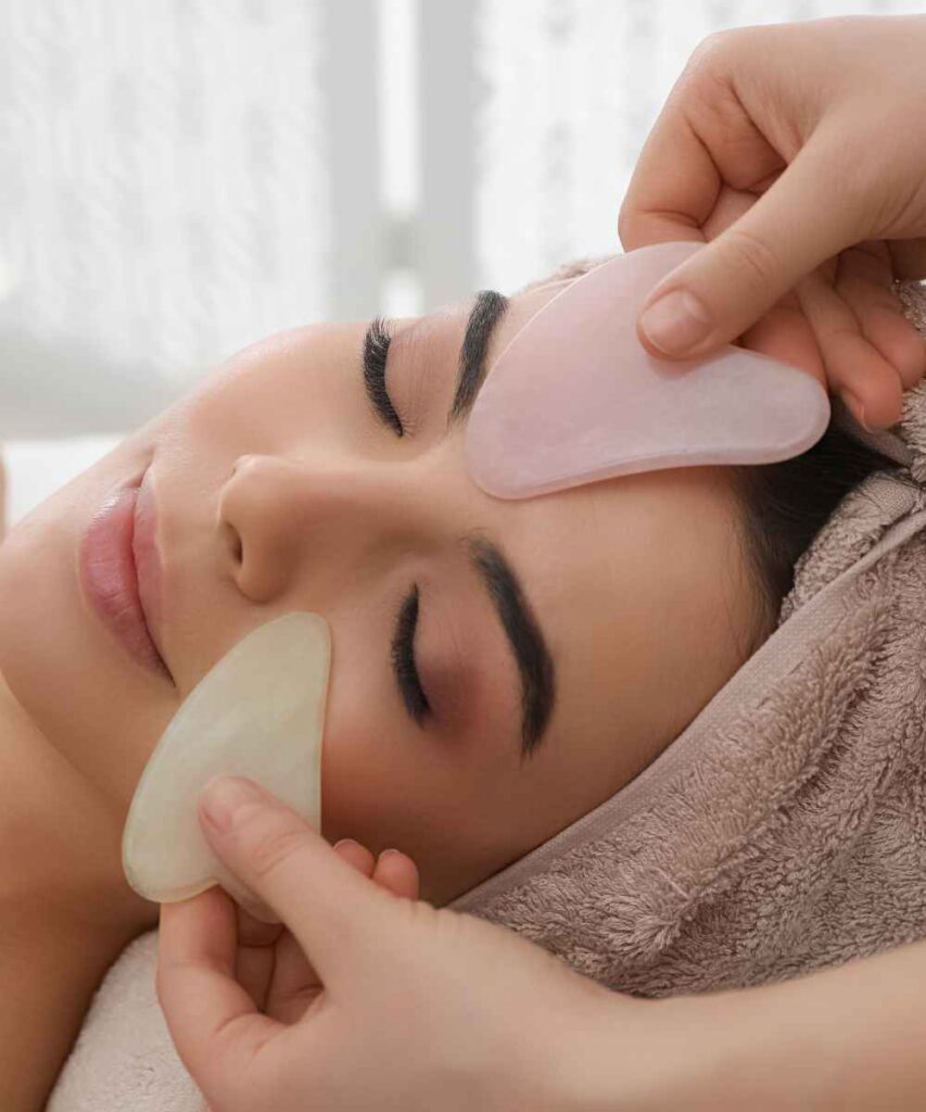Gua sha aims to move energy, known as qi or chi, around the body. The treatment involves using a tool to rub the skin in long strokes, applying enough pressure to create minor bruising. Gua sha may help to break down scar tissue and connective tissue, improving movement in the joints.