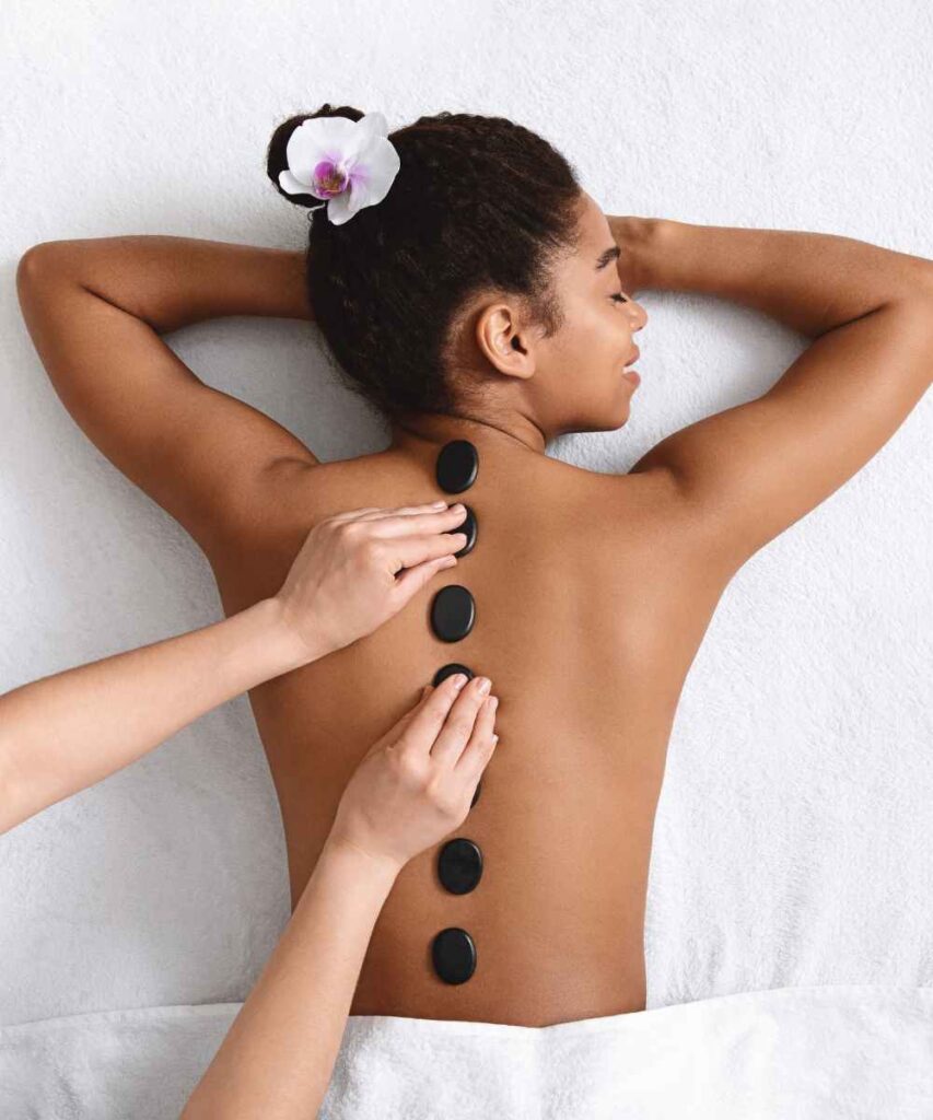 During a hot stone massage, smooth, flat, heated stones are placed on specific parts of your body. The stones are usually made of basalt, a type of volcanic rock that retains heat.